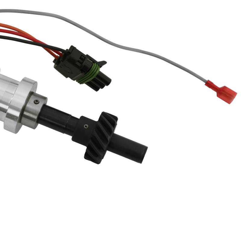 Beneath the durable bolt-down, injection-molded cap, a maintenance-free magnetic pick-up produces accurate trigger signals while an oversized shaft is guided by a sealed ball bearing. An easy-to-adjust mechanical advance allows you to custom tailor a timing curve to match your application.\nMSD's Ready-to-Run Marine Distributors are the perfect upgrade for boats that are relying on worn-out breaker points or weak ignition systems. These new distributors feature a powerful ignition module built into the billet aluminum housing. This module produces a stout inductive spark that will improve combustion of the fuel mixture for better drivability.\nThe Ready-to-Run Distributors are a breeze to install. Simply drop it in the engine and connect three wires and you're ready-to-run across the lake! Supplied with a cap, rotor, gear and Weathertight wiring harness.