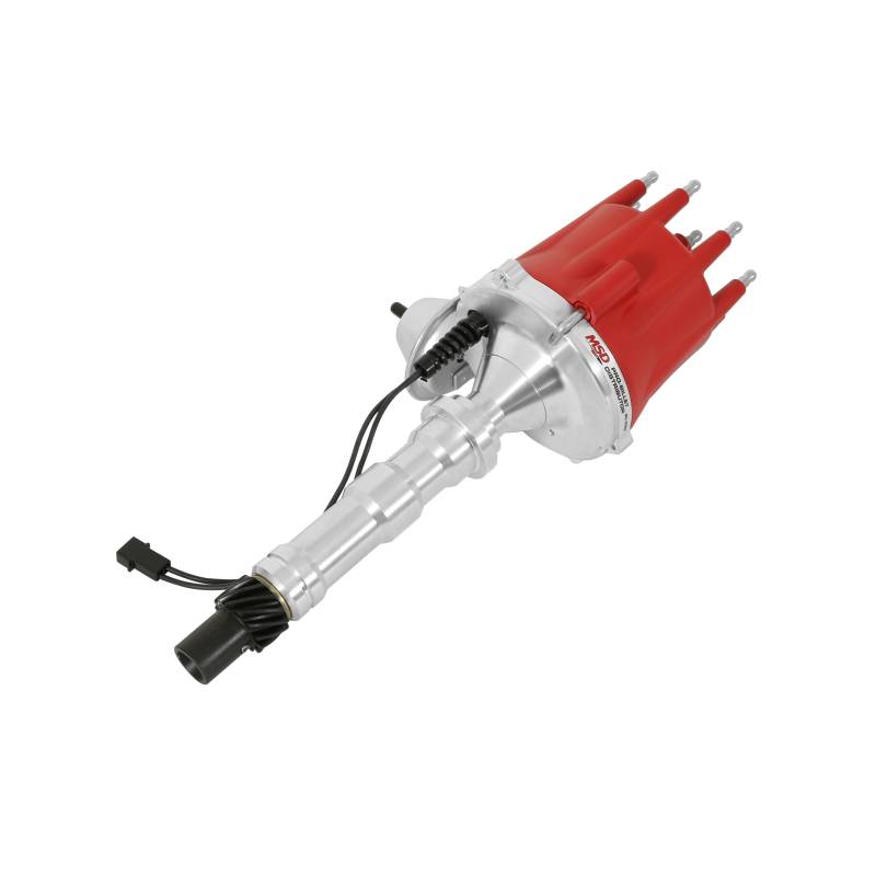 Cadillac cruisers will be excited about this new Pro-Billet distributor for the 368, 425, 472 and 500 cubic inch engines.\nThe Distributor begins life as a billet of 6061-T6 aluminum before being CNC-machined to precise dimensions. The sturdy, flex-free housing is fitted with a sealed ball-bearing and long sintered bushing for high-rpm accuracy.\nMSD's race proven magnetic pickup supplies a trigger signal that is accurate to within one degree at any rpm. Mounted above this pickup is an adjustable mechanical advance and is supplied with different springs and stop bushings for a number of curves. For street cruising economy, as if there's any such thing in a Caddy, there is a vacuum advance canister.