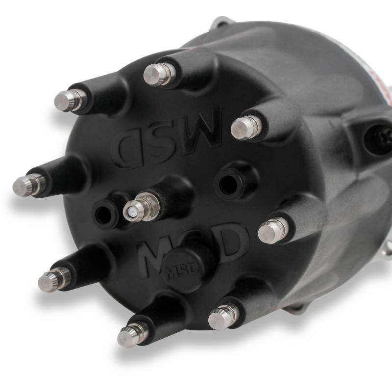 Different springs and stop bushings are supplied so you can tune an advance curve to match your application. Must be used with an MSD 6, 7 or 8-series ignition.\nMSD's most popular performance distributor is now available with a black cap that includes 316 Stainless Steel Terminals. The housing is machined from a billet of 6061-T6 aluminum on a state-of-the-art CNC machine producing exact tolerances. For high rpm stability, a .500" steel shaft is supported by a sealed ball bearing and a long sintered bushing. This shaft also receives a QPQ coating for friction reduction and resistance to corrosion. A precision machined reluctor is attached to the shaft which triggers the magnetic pick-up mounted in the housing. This high output magnetic pick-up is the most accurate way to trigger your ignition. Plus, with no moving parts to wear or adjust, the pick-up is maintenancefree! Just above the pick-up is MSD's adjustable mechanical advance assembly.