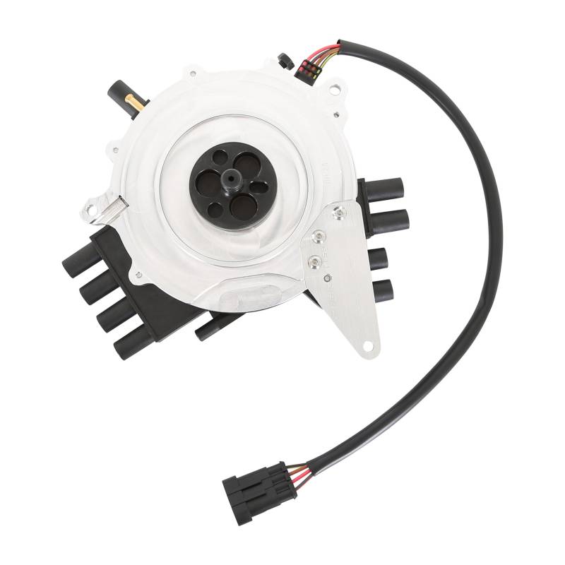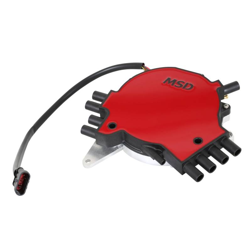 The distributor is supplied complete with our heavy duty LT1 Cap, Rotor and the components required for installation.\nOnce installed, you have the ability to adjust the ignition timing – the only distributor that offers timing adjustability! An adjustment screw allows the timing to be tweaked up to +/-5°. The distributor is equipped with a fresh air vent and has an extra thick mounting surface for the cap to eliminate leaks.\nThe pick-up is an advanced optical encoder, a different style of optical pickup than the OEM. This type of pick-up has proven to be very reliable and stable through extreme rpm and conditions. The rotor is bolted to a drive assembly that is indexed to the shaft and is stabilized through the use of a large ball bearing assembly.\nLeave it to MSD to build an all-out performance distributor to replace the OEM GM LT1 Optispark! We machine an entire billet block of aluminum down into a precise housing that fits in place of the factory piece. Then, we fill it with a reliable new pick-up assembly, a trick timing adjustment mechanism and top it off with an all new MSD distributor cap!