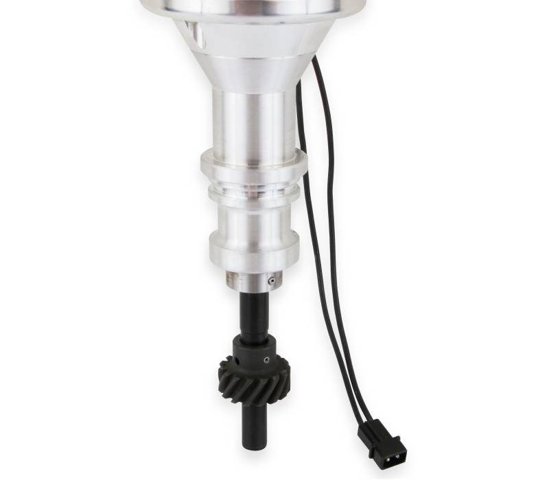 Ford crab cap distributors are built on the proven foundation of the MSD Pro-Billet distributor line. They rely on MSD's race proven magnetic pickup and precision reluctor to deliver accurate trigger signals to the MSD Ignition throughout high rpm. The reluctor assembly is turned by a hardened steel shaft which rides in a sealed ball bearing for high rpm stability and endurance. Mounted to the top of this shaft is a fully adjustable mechanical advance assembly.\nFord owners with distributor clearance issues due to blowers, air cleaners, or any other parts interference will love MSD's low profile, crab cap style distributor. The use of a crab cap allows the spark plug wires to exit the side of the distributor cap significantly lowering the overall height.