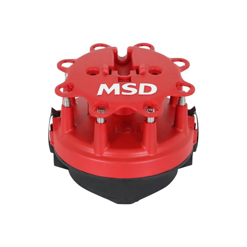 The MSD Cap-A-Dapt adapts a large, Ford style cap onto your MSD distributor. This large cap spaces the spark plug terminals farther apart which lessens the chances of cross-fire and ionization occurring. The rotor is injection molded out of Rynite® for incredible strength and resistance to spark. Thick vanes are incorporated to stir up the air in the cap for even more ionization prevention.\nThe Cap-A-Dapts will install on most MSD Pro-Billet Distributors (except the Ford FE, PN 8594). Both kits are supplied with a high quality cap with brass terminals, rotor and cap spacer.