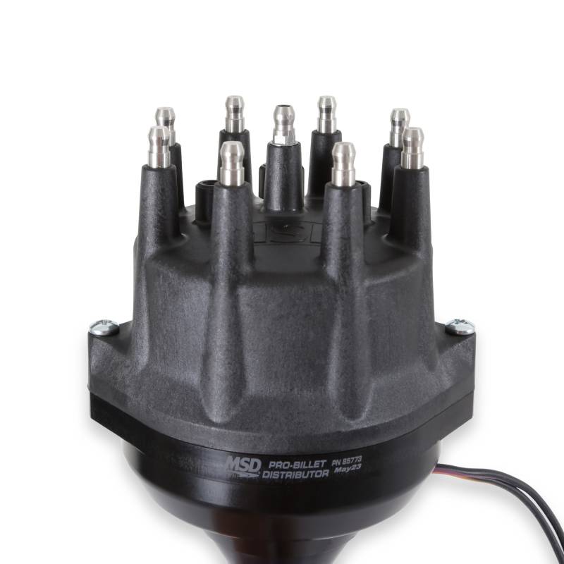 MSD Pro-Billet Distributors are the finest performance and racing distributors available. Every feature has been engineered to endure the rigors of high performance and racing engines. Whether cruising the streets or racing stock cars, dragsters, boats or trucks, MSD has a distributor for it. MSD uses state-of-the-art, Computer Numerical Controlled (CNC) mills and lathes to machine each housing. After a long series of precise cuts and movements, the billet is formed into a flawless distributor housing that is accurate to within 0.001". The flex-free housings are lightweight, have no porosity or weak areas and look great on polished, show quality engines.