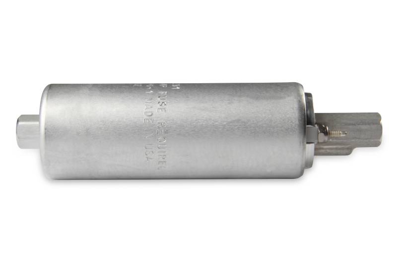 Holley offers a full line of high performance inline fuel pumps. These Holley electric in-tank fuel pumps have a lightweight. compact design to fit most EFI applications, including turbo and supercharged.\nThese Holley products are QS9000 certified and made in the USA!\nThe 12-930 universal in-line fuel pump is intended for Throttle Body EFI systems up to 350 horsepower. It is designed to work in-line, not inside the tank, so installation is a snap. The 12-930 is rated for continuous duty service and have been tested up to 2,500 hours.\nDoes not come with hardware.