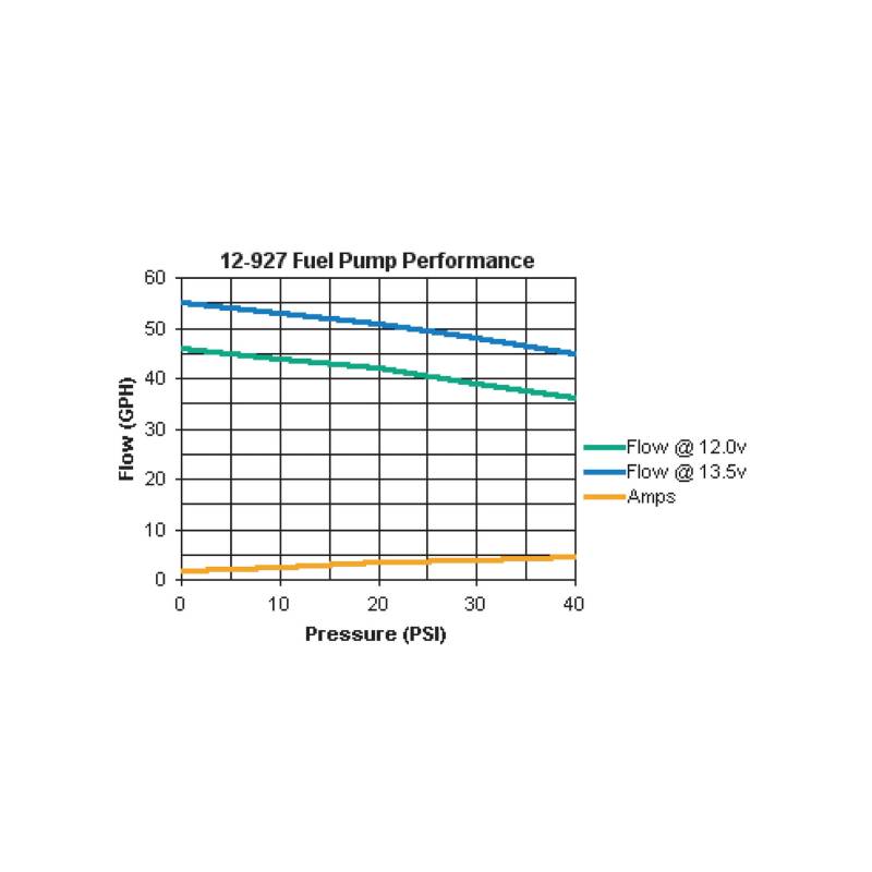 The 12-927 universal in-line fuel pump is intended for Throttle Body EFI systems. It is designed to work in-line, not inside the tank, so installation is a snap. The 12-927 is rated for continuous duty service and have been tested up to 2,500 hours.