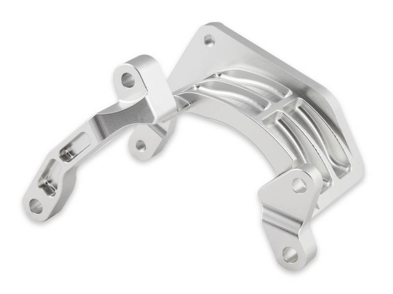 \nThat is where Holley comes in. The new A/C brackets were designed to help you gain additional space when swapping this engine platform into older muscle cars. While there is not much room on the lower front of these dry sump engines, these brackets allow you to use the SD7 Type A/C compressor. The Bracket is designed to rotate SD7 compressor to position your A/C lines upward instead of pointing directly outward towards that frame rail area.