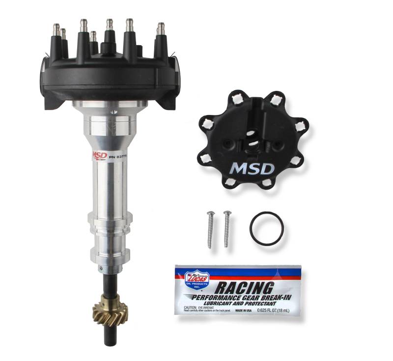 These distributors have a low-profile cap assembly to clear busy intake set-ups and are topped with MSD's new Rynite-molded Ford-style cap and wire retainer. The low design is accomplished because the only thing under the cap is a rotor! These distributors don't have an advance assembly or pick-up so they must be used with a Crank Trigger. Since these distributors are designed for racing applications, a ball bearing is pressed into the housing to guide the polished steel shaft. Each distributor is supplied with a bronze gear.\nBlue oval racers will be happy to see these Crank Trigger Distributors. The housing of these three distributors are standard-height Ford Distributors so they will work with cast intake manifolds.