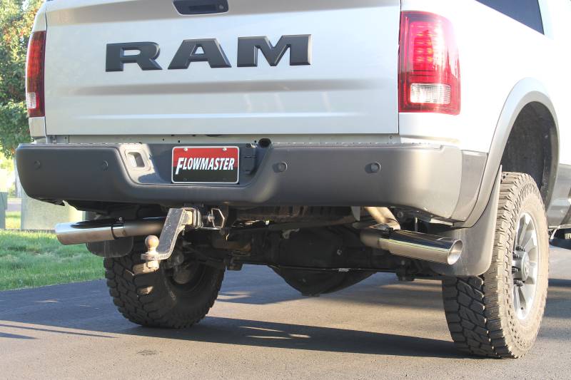 The American Thunder® cat-back exhaust system for 2014-2024 Ram 2500 trucks is perfect for the person looking for moderately aggressive interior and aggressive exterior sound levels, with all of the performance benefits that you would expect from Flowmaster®. This bolt-on emissions-legal system fits the Crew Cab Standard Bed/Long Bed and Mega Cab models with a 6.4L engine and coil spring rear suspension. The system features a stainless steel 50 Series HD™ muffler with large 4.00-inch internals. The large dual 3.00-inch stainless steel tailpipes are mandrel-bent to reduce restrictions and maximize performance. The kit has two options for tailpipe exits, either out the sides behind the rear wheels for towing, or straight out the back under the rear bumper. They are finished off with a pair of large 4.00-inch polished stainless steel tips. The exhaust system is covered by our Lifetime Limited Warranty and includes all necessary parts, hardware and easy to follow installation instructions. Note: Fits 149.4, 160.5 and 169.4-inch wheelbases. Does not fit trucks with the optional factory airbag suspension.