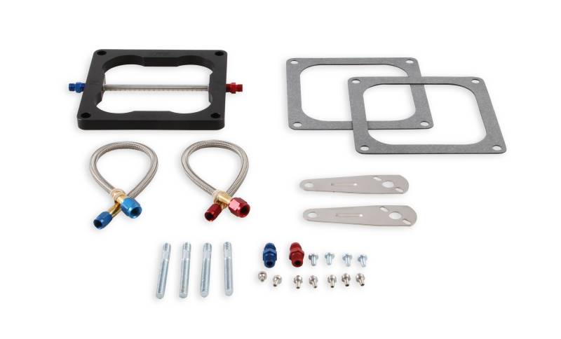 Big Shot Injector Plate, w/ Jets & Plumbing, Holley Dominator, V8 - Assure a steady, precise metered flow of nitrous and fuel for reliability. Backed with years of laboratory research, as well as dyno and drag strip testing. NOS Injector Plates are available for those who want to build their own system or upgrade their current nitrous system without having to go through the expense of a new complete system. Unless specified, NOS Injector plates incorporate a low profile (1/2" thick) design and are constructed of solid billet or die cast aluminum with a durable black finish. Included are all applicable gaskets, studs, jets and plumbing.