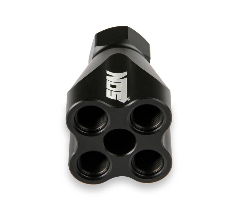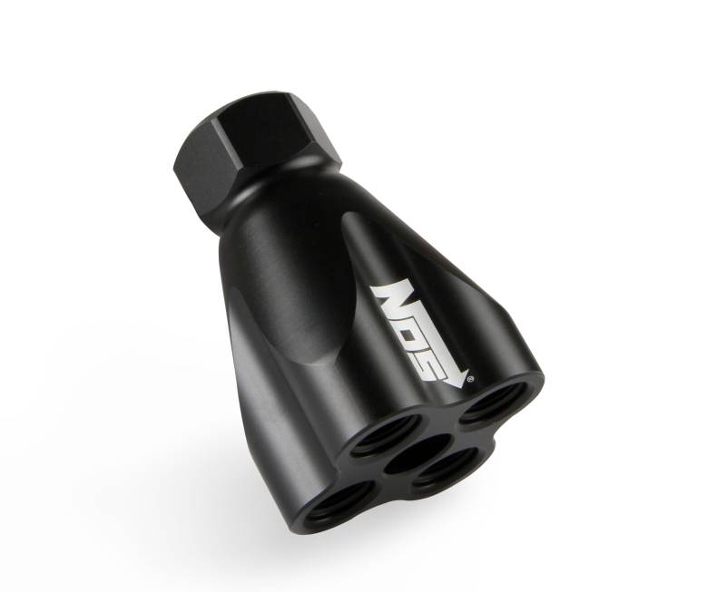 Quality distribution blocks are a necessity for today's multi-stage, high powered Nitrous systems. The engineers at NOS have taken the tried and true showerhead design and turned it into a low profile, user friendly design. The parallel inlet/outlet design allows for a much more compact installation of the Nitrous solenoid feed lines. The internal passages are profiled to maximize flow and minimize pressure drop across the distribution block. For the best flowing, most compact showerhead distribution blocks, look for the NOS logo.