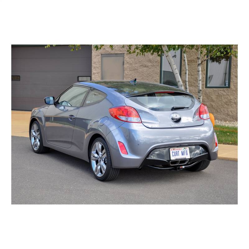 Class 1 Trailer Hitch, 1-1/4" Ball Mount, Select Hyundai Veloster Connect to your lifestyle with a custom hitch receiver from CURT. All of our custom hitches are designed for a vehicle-specific fit, manufactured with pride, finished for industry-leading rust resistance and tested to rigorous SAE J684 standards for safety. This class 1 trailer hitch and ball mount combination is designed for a custom fit on select years of the Hyundai Veloster (see application info to verify fitment). The hitch integrates with the vehicle's frame and provides a useful and dependable 1-1/4" x 1-1/4" receiver. The receiver is perfect for attaching the included ball mount and towing a small trailer, or for adding cargo space with a hitch-mounted cargo carrier, bike rack or other accessory. This particular class 1 hitch is rated for 1,000 pounds gross trailer weight and 100 pounds tongue weight (never exceed the lowest-rated towing component). The ball mount included with this trailer hitch quickly and easily installs into the hitch receiver and has a 3/4" trailer ball hole (trailer ball not included). It can be mounted in the rise or drop position to promote level towing. Like all CURT custom hitches, this class 1 hitch is protected with our co-cured finishing process. It is descaled for a smooth surface, immersed in liquid A-coat for rust resistance inside and out, covered with a durable black powder coat and finally co-cured for an industry-leading rust, chip and UV-resistant shield. No matter where you're headed or which season of the year you’re towing in, this CURT hitch is equipped for long-lasting resilience to the elements. It features an open-back receiver for easy cleaning, and it comes with all the hardware necessary for the installation. Rated to 1,000 lbs. gross trailer weight and 100 lbs. tongue weight Engineered with a vehicle-specific design for a custom fit Tested for safety in accordance with SAE J684 Precisely welded for superior strength and fit Protected by a durable high-gloss black powder coat finish