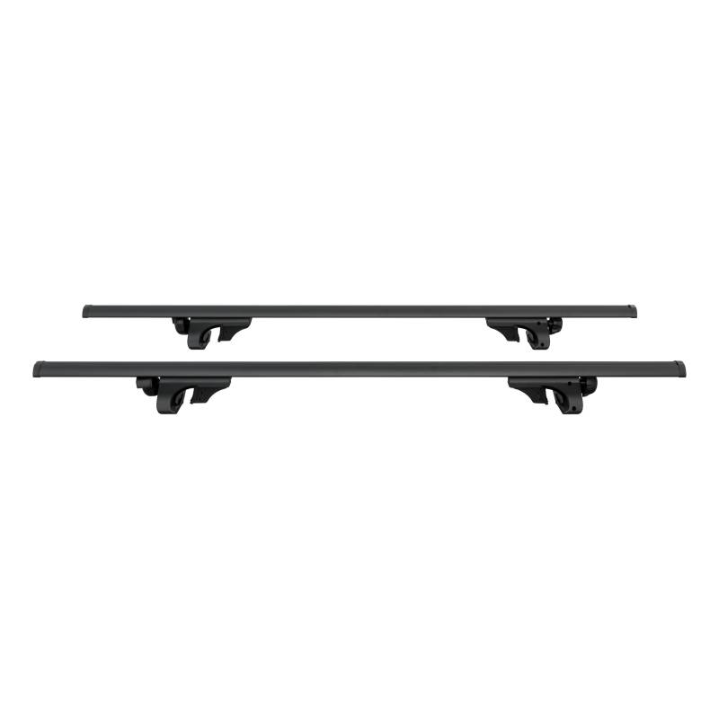 53-3/8" Aluminum Universal Roof Rack Crossbars CURT roof rack cross bars empower your outdoor adventures by providing convenient, secure roof cargo storage whenever needed. These roof crossbars are easy to install with no tools required, and they feature a lightweight aluminum construction for easy handling. CURT roof rack cross bars install quickly and securely with their lightweight, universal design. They come with rubber-coated clamps that fit most car roof side rails, and they are adjustable for a maximum span of 50 inches. Best of all, they required zero tools for installation! The integrated knobs tighten down onto the rails for solid mounting, and they have key-operated locks to help enhance security and deter theft. CURT universal roof rack cross bars are constructed from naturally rust-resistant aluminum to easily outlast the elements. Aluminum is also lightweight for easier handling and installation of the crossbars whenever needed. To further protect the aluminum against corrosion and add a sleek look, the oval OE-style tubes are covered in a durable black powder coat finish. These rooftop crossbars are rated for 150 pounds to accommodate a variety of kayaks, canoes, rooftop cargo carriers and much more. They also feature rubber strips along the top edge to avoid marring the finish on your kayak or other cargo. CURT roof rack crossbars measure 53-3/8 inches long, 2-1/8 inches wide and 7/8 inches high. They stand 2 inches off the car roof side rails when installed. Two cross bars are included per package.