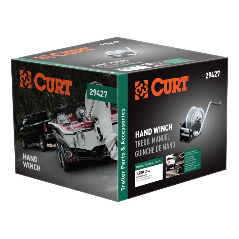 Hand Crank Winch (1,700 lbs, 8" Handle) After a full day on the water, you and your crew are tired. It doesn't matter if you were swimming off the back of the pontoon boat, racing around the lake in your speed boat or just casting a line off the side of your fishing boat -- when you get to shore, the last thing you want to deal with is a faulty hand crank on your boat trailer. You want a winch that makes your job easy and that lets you get out of the marina and back home sooner. CURT hand winches are constructed from cold-forged steel to provide structurally superior pinions and eliminate gear-to-shaft bonding failures. They are designed to be mounted on a variety of trailers and are especially useful for boat trailers. CURT boat winches can also serve a number other winch applications, though they are not designed for vehicle towing. This CURT hand winch or boat winch features a capacity of 1,700 lbs. with a gear ratio of 5.1:1. It has a hub diameter of 1" and a handle length of 8". Crank-style boat winch for boat trailers or hoisting applications Compatible CURT winch straps #29007, #29450 or #29451 Constructed from high-strength, cold-forged steel Equipped with a locking lever for increased safety Strong pinions eliminate gear-to-shaft bonding failures