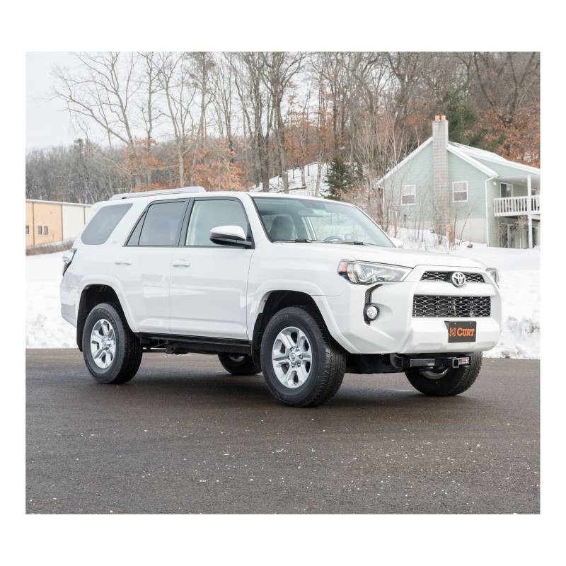 2" Front Receiver Hitch, Select Toyota 4Runner A CURT front trailer hitch allows you to use the front end of your vehicle for a variety of towing applications. They can be used for mounting a winch, a snow plow, a number of towing accessories and can even be used for some trailering applications. When space is limited, a front trailer hitch is commonly used to hold a cargo carrier, freeing up space inside the vehicle for extra cargo and making the rear mount receiver available to pull a trailer. At the boat ramp, your boat trailer can be hitched up to the front receiver hitch, giving you better control over the trailer as you launch. Some of the other accessories that can be used with a front tow hitch are the CURT winch mount, step pad, license plate holder, spare tire mount, skid shield and tow hooks. All CURT front trailer hitches provide a useful receiver tube to accept a 2" x 2" shank, and they are commonly used on trucks, vans and SUVs. This front trailer hitch is rated for 3,500 lbs. GTW and 350 lbs. TW. It also has a straight-line pull rating of 9,000 lbs. It is designed to be a custom trailer hitch for certain years of the Toyota 4Runner (to verify your vehicle compatibility, see application info). It comes with all necessary hardware for a complete installation and is backed by a limited lifetime warranty. Rated to 3,500 lbs. gross trailer weight and 350 lbs. tongue weight Compatible with a tow hook or shackle mount (9,000 lbs. straight-line pull) Made with a vehicle-specific design for a custom fit Provides a convenient mount for hitch accessories Ideal for attaching a snow plow, cargo carrier or other front hitch mount