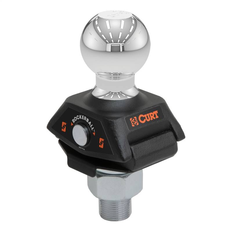 The CURT RockerBall trailer ball is a cushion hitch ball that dynamically absorbs jerking and jarring from your trailer at the coupling point. Just bolt it onto your existing trailer hitch ball mount to enjoy increased comfort, enhanced control and extended longevity of your vehicles systems. The RockerBall tow ball is engineered with ShockDrop technology: a cushion isolator that reduces noise, vibrations and chucking at the coupling point. This produces quieter towing, increased driver control over the trailer and reduced strain on the vehicles brakes, towing system and suspension, compared to a conventional metal-on-metal towing connection. The RockerBall fits onto a variety of standard ball mounts -- virtually any ball mount with a 2-1/2-inch wide trailer ball tongue and 1-inch diameter ball hole. RockerBall is also virtually maintenance-free. Unlike other cushion hitch and torsion hitch options, it has no airbags or bearings to service. Just apply grease to the zerk fitting as needed for continuous lubrication and smooth towing. The RockerBall trailer ball is constructed from forged steel for exceptional strength, and it comes with a powder coat finish and chrome plating for dependable corrosion resistance.