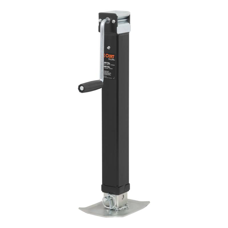 Direct-Weld Square Jack with Side Handle (8,000 lbs, 15" Travel) In our goal of being your best source for all things towing, the CURT line of trailer jacks is designed with care and manufactured with pride. CURT jacks are made with quality to promote the life and function of your trailer, and they come in several different styles to accommodate your needs, whether you are a frequenter of the boat landing, the campground, the racetrack or the farm. CURT square jacks are a heavy-duty trailer jack option. They are designed to weld directly onto the frame of your trailer for superior holding strength. This CURT direct weld square jack features a support capacity of 8,000 lbs., a lift capacity of 7,000 lbs. and a travel of 15". With a jack foot plate attached to the bottom, this type of jack also provides added stability for your trailer on rough terrain. It comes with a side-wind handle and is an excellent choice to meet the high demands of the farming life and construction industry. It does not matter what kind of trailer you tow -- a boat trailer, utility trailer, livestock hauler or recreational vehicle trailer -- if you have a receiver-style trailer, you will want a jack that complements its function. For a trailer jack that will not steer your trailer wrong, CURT has the answer.