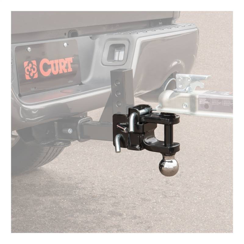 Replacement Adjustable Multipurpose Ball Mount Head (Fits #45049) If you own multiple trailers or frequently tow a variety of loads, you know how much time and money are spent tailoring your towing system to each and every individual trailer. There is nothing more inconvenient than switching back and forth between a few different ball mounts and trying to remember which mount fits with which trailer. A CURT adjustable ball mount is your multipurpose towing solution. This CURT adjustable ball mount fits an adjustable shank size of 2" x 2" and features two different trailer ball sizes to accommodate two different coupler sizes: 2" and 2-5/16". The 2" trailer ball offers a gross trailer weight capacity of 7,500 lbs. and a tongue weight capacity of 750 lbs., while the 2-5/16" ball offers 10,000 lbs. GTW and 1,000 lbs. TW. This allows you to easily tow a variety of heavyweight trailers and to ensure that each one tows smoothly and securely. It includes three 5/8" hitch pins for quick and secure installation, and comes equipped with a clevis bar to accept a lunette ring. All CURT adjustable ball mounts are made with sturdy steel construction and come with a durable powder coat finish for long-lasting rust, scratch and UV resistance.
