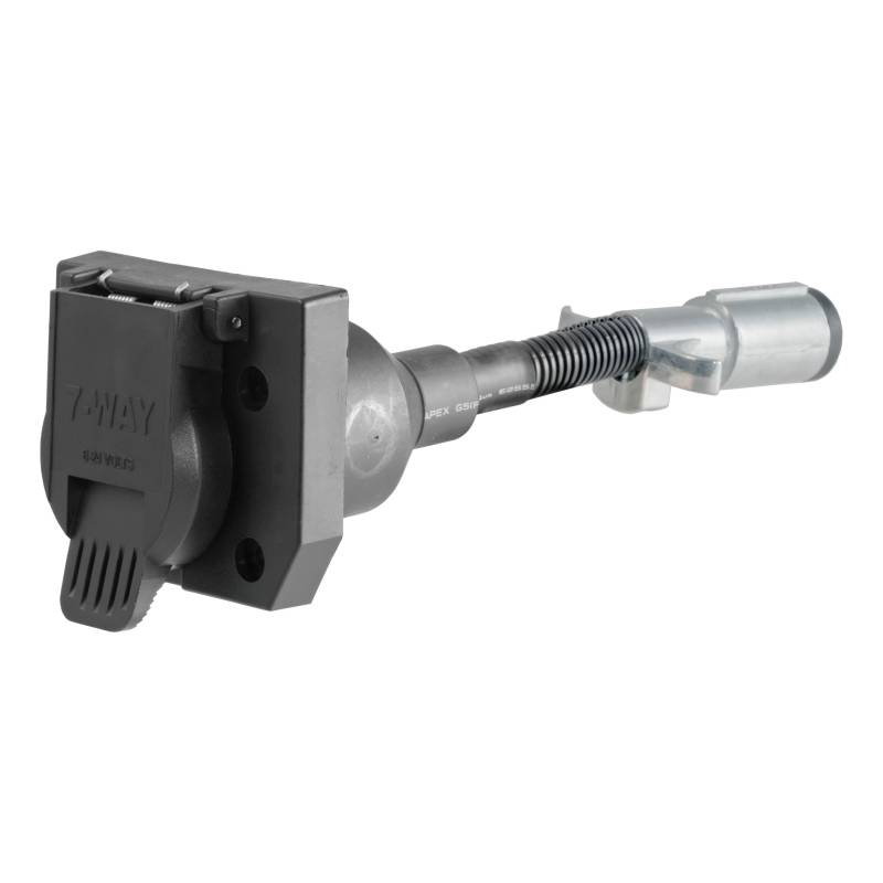 There are several different types of connectors used to supply power from a tow vehicles electrical system to a trailers wiring system. Some trailers only need the bare essentials -- running lights, brake lights and turn signals -- while others require a connection for reverse lights, electric brakes and auxiliary power. With connectors ranging from simple to complex, it may be the case that the connection between your vehicle and your trailer is not a perfect match. For example, your truck may be equipped with a 6-way round socket, but your trailer may have a 4-way flat plug. For this very common problem, CURT offers a quick and simple solution in the form of an electrical adapter. An adapter is an electrical device that allows a connection to be made between a mismatched trailer plug and vehicle socket. It easily plugs in your vehicles electrical socket and usually requires no additional wiring. CURT offers an array of adapters to accommodate most types of plugs and sockets, including 4-way flat, 4-way round, 5-way flat, 6-way round, 7-way RV blades and more. This electrical adapter is designed to adapt a 6-way round vehicle socket with taillights in center pin to fit a 7-way RV blade trailer plug. It features quality plastic construction and requires no splicing. All CURT wiring and electrical products come with a one-year limited warranty to give you the assurance you need to tow with confidence.