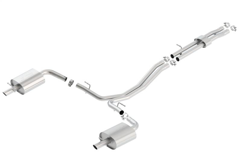 Cat-Back Exhaust System - S-Type Tips NOT included. Use factory valance / tips. Borla(r) Cat-Back(tm) & Axle-Back exhaust systems feature patented straight-through and multi-core technology designed to unleash hidden horsepower. Increased exhaust velocity adds power, driving excitement, fuel economy, and the distinctive Borla(r) Sound of Power respected by motoring enthusiasts everywhere. Each system is built from premium T-304 stainless steel, superior to T-400 series knockoffs (such as 409), to give you the absolute best in performance and durability. Ultra-smooth mandrel bends ensure maximum flow & power, and precision computer-controlled CNC manufacturing ensures an accurate fit. Best of all, Borla(r) stands behind every system with a Million-Mile Warranty. Just what you'd expect from the world's most experienced (and most winning) exhaust brand.