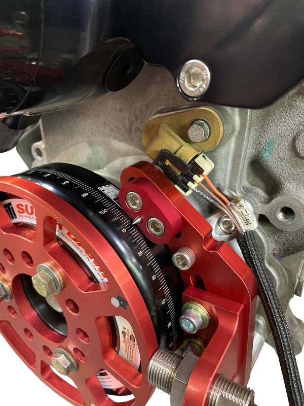 Upgrading to an MSD Flying Magnet Crank Trigger Kit will deliver the precise and reliable signal that a high performance engine requires. This kit gives you the ability to control timing electronically through a Holley EFI ECU (or other standalone engine management system / ignition controller). At the heart of the kit is the 3-wire Hall-Effect Sensor that is easier to set up, less susceptible to EMI/RFI interference/noise, and less likely to have false signals than other methods (Distributors and VR Magnetic Sensors). In addition, they are less prone to mechanical failure since there are no wear parts. With the included high quality timing pointer and the use of a direct bolt-on, degreed balancer (ATI 917777 or 917211), you'll be able to adjust timing in the precise increments required for your LS Engine.