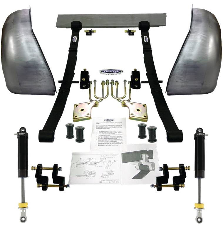 Detroit Speed Mini-Tub Kit - 2 in. Drop A complete rear Mini-Tub kit is available from Detroit Speed and includes all necessary parts for a complete project package. Spring Rate: 175lbs/in Spring Free Length: 5in Arc Height Total Spring Height : 6-1/4" Mini Tub Kit Includes All Parts to Complete Project Ride Height: 2" Drop Mini Tub Width: 2.75" Spring Rate: 175 lbs/in Includes: Mini Tubs, Leaf Springs, Offset Shackles, U-Bolts, Shocks, Shock Mounts & Mounting Hardware