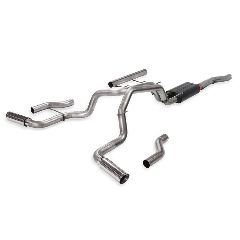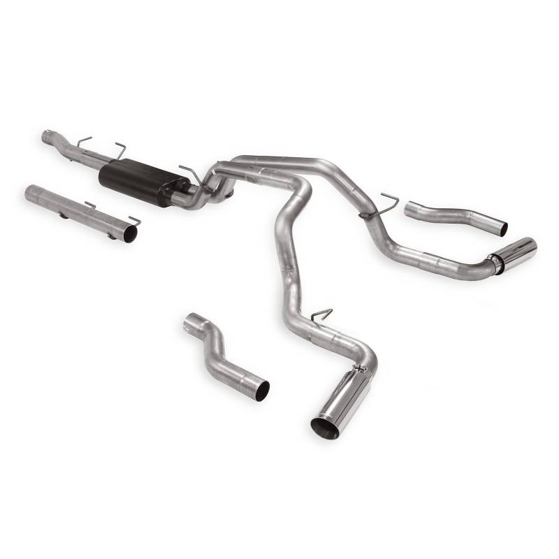 This stainless steel American Thunder® cat-back exhaust system fits 2014-2024 RAM 3500 Crew Cab and Mega Cab trucks with the 6.4L Hemi engine. As a Flowmaster® system, it will provide improved performance and fuel economy while producing a moderate tone inside and outside the truck. Constructed from 16-gauge mandrel-bent 409 stainless steel tubing, the 3.50-inch inlet pipe flows into a 50 Series HD™ muffler for a deep moderate performance tone. The dual 3.00-inch mandrel-bent tailpipes utilize the factory hanger locations for an easy installation and the system is finished off with a pair of large 4.00-inch polished 304 stainless steel tips. The system comes with two sets of tailpipe exits giving you the option of either exiting straight-out the back under the bumper or out the sides behind the rear wheels, which is ideal for towing applications. Includes easy to follow instructions and all necessary hardware and is covered by our Lifetime Limited Warranty. Notes: Fits 2 & 4 Wheel Drive trucks with single or dual rear wheels and 149.5, 160 & 168.9-inch Wheelbases.