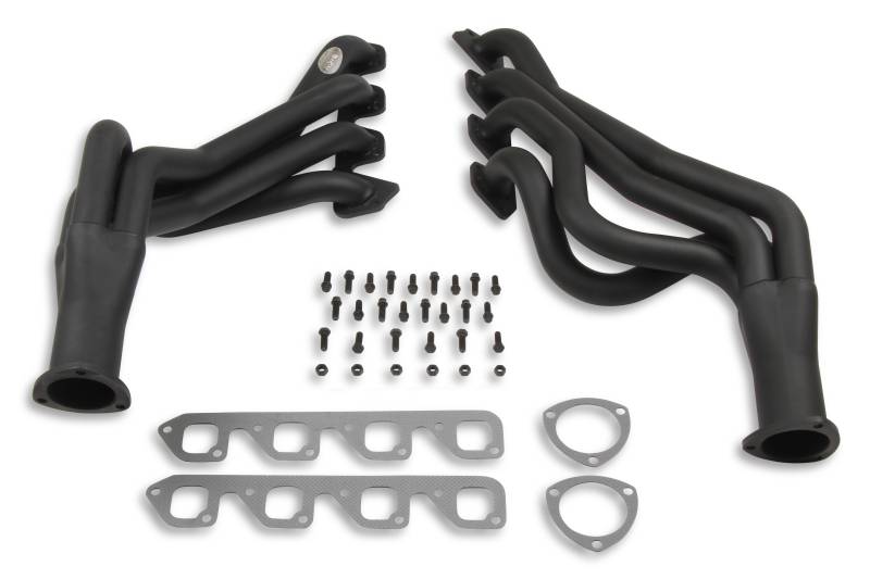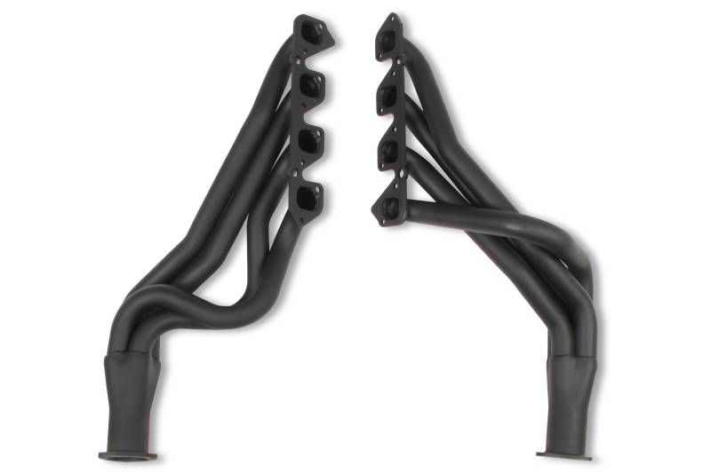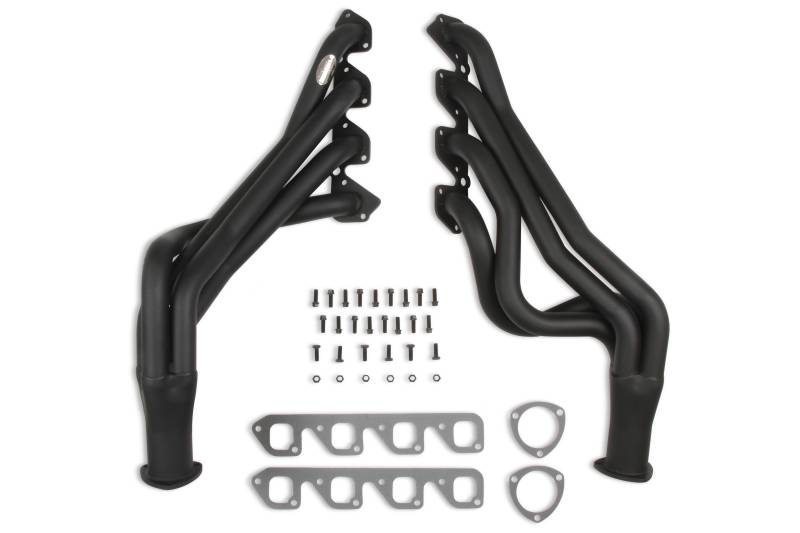 Hooker Competition headers offer the best value in the high performance header market. Designed for the value-conscious buyer, Hooker Competition headers offer premium features at a very competitive price.\nMade of durable 16 gauge mild steel tubing, the Hooker Competition header design utilizes a long transition collector to reduce back pressure and increase exhaust flow. A perfect sealing surface is assured with the 5/16" machined flanges, with welded O-ring seals. Experience has proven that this flange size is ideal to maintain header integrity and be pliable enough to seal each exhaust port. Tubing is mandrel-bent to maintain metal strength and provide consistent tube diameter at radii to maximize performance.\nHooker Competition headers have a standard finish that features a heat-cured, high-heat-resistant paint. Optionally, the famous Hooker Ceramic Thermal Barrier Coating is available.