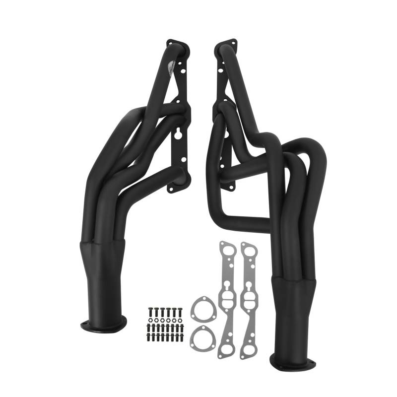 Hooker Competition headers offer the best value in the high performance header market. Designed for the value-conscious buyer, Hooker Competition headers offer premium features at a very competitive price. Made of durable 16 gauge mild steel tubing, the Hooker Competition header design utilizes a long transition collector to reduce back pressure and increase exhaust flow. A perfect sealing surface is assured with the 5/16" machined flanges, with welded O-ring seals. Experience has proven that this flange size is ideal to maintain header integrity and be pliable enough to seal each exhaust port. Tubing is mandrel-bent to maintain metal strength and provide consistent tube diameter at radii to maximize performance. Hooker Competition headers have a standard finish that features a heat-cured, high-heat-resistant paint. Optionally, the famous Hooker Ceramic Thermal Barrier Coating is available.