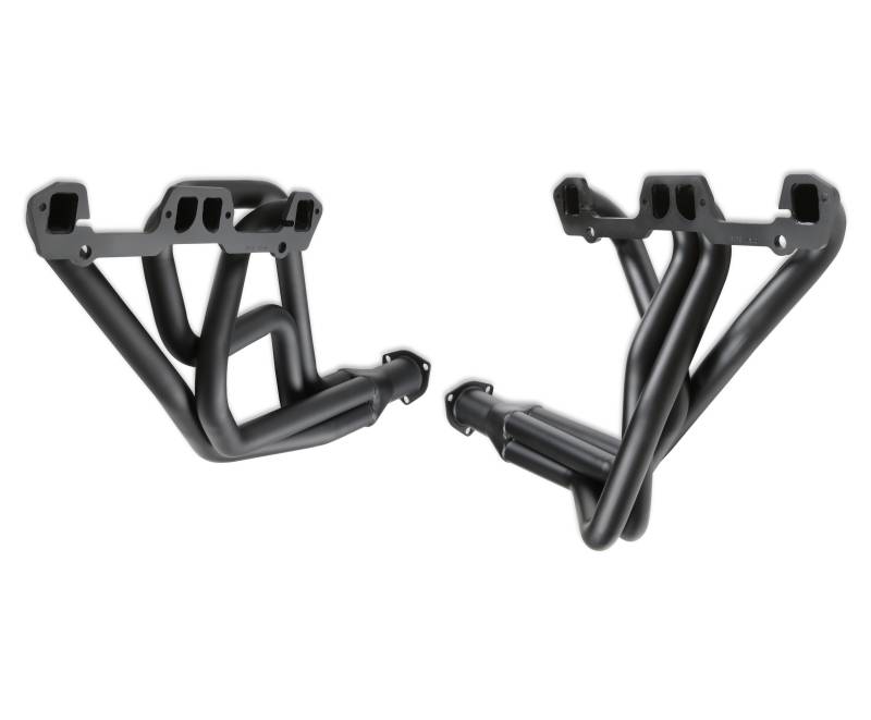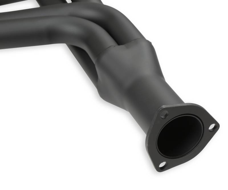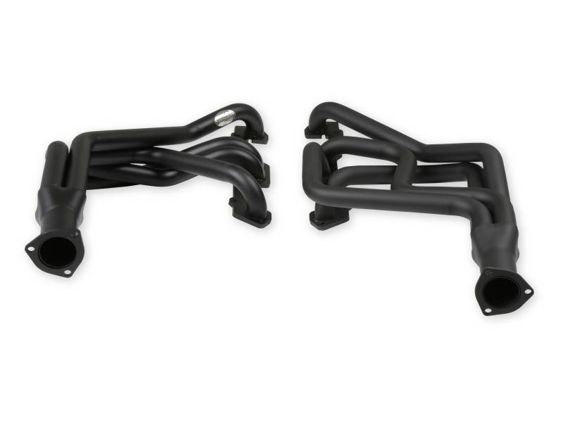 Hooker Competition headers offer the best value in the high performance header market. Designed for the value-conscious buyer, Hooker Competition headers offer premium features at a very competitive price. Made of durable 16 gauge mild steel tubing, the Hooker Competition header design utilizes a long transition collector to reduce back pressure and increase exhaust flow. A perfect sealing surface is assured with the 5/16" machined flanges, with welded O-ring seals. Experience has proven that this flange size is ideal to maintain header integrity and be pliable enough to seal each exhaust port. Tubing is mandrel-bent to maintain metal strength and provide consistent tube diameter at radii to maximize performance. Hooker Competition headers have a standard finish that features a heat-cured, high-heat-resistant paint. Optionally, the famous Hooker Ceramic Thermal Barrier Coating is available.