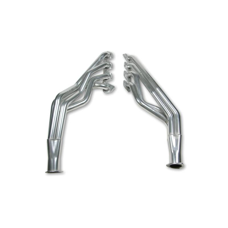 Hooker Competition headers offer the best value in the high performance header market. Designed for the value-conscious buyer, Hooker Competition headers offer premium features at a very competitive price. Made of durable 16 gauge mild steel tubing, the Hooker Competition header design utilizes a long transition collector to reduce back pressure and increase exhaust flow. A perfect sealing surface is assured with the 5/16" machined flanges, with welded O-ring seals. Experience has proven that this flange size is ideal to maintain header integrity and be pliable enough to seal each exhaust port. Tubing is mandrel-bent to maintain metal strength and provide consistent tube diameter at radii to maximize performance.\nHooker Competition headers have a standard finish that features a heat-cured, high-heat-resistant paint. Optionally, the famous Hooker Ceramic Thermal Barrier Coating is available.
