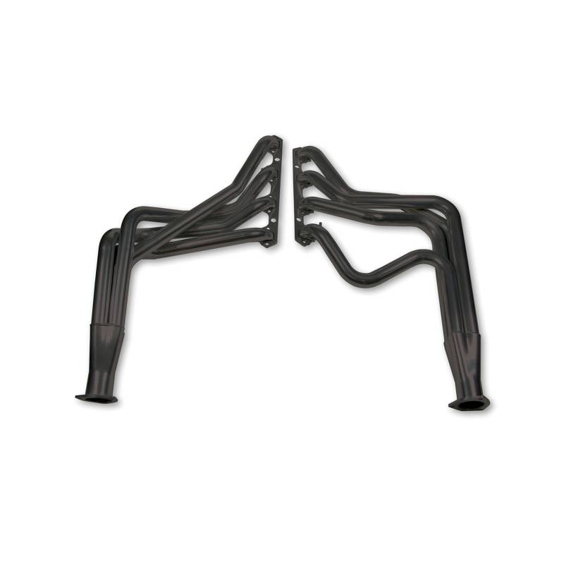 Hooker Competition headers offer the best value in the high performance header market. Designed for the value-conscious buyer, Hooker Competition headers offer premium features at a very competitive price.\nMade of durable 16 gauge mild steel tubing, the Hooker Competition header design utilizes a long transition collector to reduce back pressure and increase exhaust flow. A perfect sealing surface is assured with the 5/16" machined flanges, with welded O-ring seals. Experience has proven that this flange size is ideal to maintain header integrity and be pliable enough to seal each exhaust port. Tubing is mandrel-bent to maintain metal strength and provide consistent tube diameter at radii to maximize performance.\nHooker Competition headers have a standard finish that features a heat-cured, high-heat-resistant paint. Optionally, the famous Hooker Ceramic Thermal Barrier Coating is available.