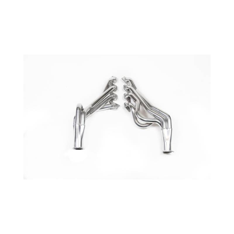 Hooker Competition headers offer the best value in the high performance header market. Designed for the value-conscious buyer, Hooker Competition headers offer premium features at a very competitive price.\nMade of durable 16 gauge mild steel tubing, the Hooker Competition header design utilizes a long transition collector to reduce back pressure and increase exhaust flow. A perfect sealing surface is assured with the 5/16" machined flanges, with welded O-ring seals. Experience has proven that this flange size is ideal to maintain header integrity and be pliable enough to seal each exhaust port. Tubing is mandrel-bent to maintain metal strength and provide consistent tube diameter at radii to maximize performance.\nHooker Competition headers have a standard finish that features a heat-cured, high-heat-resistant paint. Optionally, the famous Hooker Ceramic Thermal Barrier Coating is available.