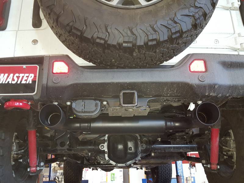 This Flowmaster American Thunder® Cat-back exhaust system for the 2018-2026 Jeep Wrangler JL 2 and 4-door models with the 3.6L engine is perfect for the person looking for a moderate to aggressive exterior and mild interior exhaust tone, with all of the performance benefits that you would expect from Flowmaster®. This bolt-on Dual Out Rear emissions-legal system features a 2.50-inch mandrel bent stainless inlet pipe, a specially designed stainless steel resonator to keep the interior resonance down to a minimum, a stainless steel 80 Series™ cross-flow muffler, and dual 2.50-inch mandrel bent tailpipes. The system finishes with large dual 4.00-inch black ceramic coated Flowmaster stainless steel tips for a stealthy modern look. The system is designed for a perfect fit and includes all necessary parts and hardware for easy installation you can do at home.