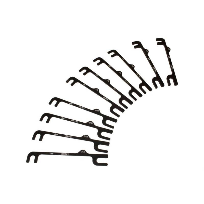Detroit Speed Camber Shim Track Kit Detroit Speed's Camber Shim Track Kit allows you to adjust camber easily with our one-piece slotted camber shims on your Detroit Speed Front Suspension System or Stock Frame. Each shim is machined from 6061 aluminum and is then anodized black for durability. Set of (10) Camber Shims (4) 1/16" Shims (4) 1/8" Shims (2) 1/4" Shims Aluminum with Black Anodized Finish