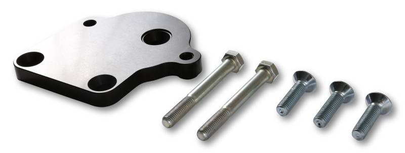 The late-model factory power steering pump on the Mopar Gen III Hemi engines has too much pressure for the steering box on most older muscle cars & trucks. This mounting plate is designed to mount Power Steering Pump 198-104 on Gen III Hemi Engines. This special Saginaw type II power steering pump produces the proper pressure, and works with pulley 97-383 to operate the pump at the proper speed when used with the existing drive system on Gen III Hemi engines. The complete kit (part # VK090244) includes the power steering pump with reservoir, mounting plate, hardline adapter, and pulley.