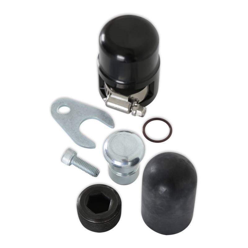 Some engine swaps and racing applications do not need the heater, but it is tough to block off with the 7.3-liter Godzilla engine. The factory rear hose port is retained with a bolt (and the port is not tapped), and the front port is a tube with a hose barb that isn't removable. This kit includes a billet plug with an o-ring seal retained by a bracket and bolt, and the second plug is a rubber cap with a billet cover that clamps over the tube. These caps and plugs provide a more attractive appearance than other options.