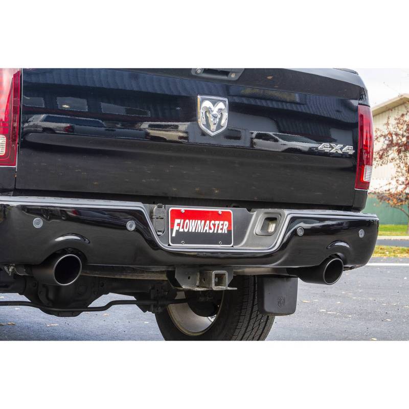 Flowmaster's Flow FX Cat-back exhaust system for the 2009-2024* (*2019-2024 classic body only) RAM truck with 5.7L Hemi, and 2009-2013 4.7L models, is manufactured using 409 stainless steel for years of trouble free service. Features include 3.00-inch inlet pipe leading into a single inlet/dual outlet Flow FX straight-through muffler for great sound and maximum performance. The dual 2.50-inch mandrel bent tailpipes exit out the factory rear bumper cutouts with large 4.50-inch diameter black ceramic coated 304 stainless steel tips, giving your RAM a custom look that goes hand in hand with that deep, performance Flow FX sound. This Flow FX system utilizes all factory hanger locations and connections for an easy at home installation; no cutting or welding is required. Includes installation instructions and all necessary hardware. Note: This Flow FX Cat-back system fits both two and four wheel drive models along with all cab and bed configurations.