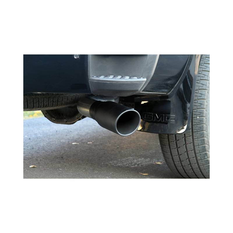 The new Flowmaster® Flow FX® cat-back exhaust system for the 2011-2018 GM Silverado/Sierra 1500 trucks with the 6.2-Liter engine is manufactured using durable 409 stainless steel throughout and features 3.5-inch mandrel bent pipes for better exhaust gas flow, and a Flow FX "straight-through" muffler is used for a moderate sound level and maximum performance. Maximum increases on the dyno revealed +16 hp and +16 lb-ft at the rear wheels. This system exits out the side, behind the rear wheel with a 5.00-inch black ceramic tip for added style and a custom look. The system uses all the existing factory hanger locations and includes installation instructions and all necessary hardware for an easy installation that you can do at home. Backed by Flowmaster's Lifetime Limited Warranty.