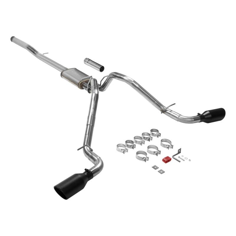 Our new Flowmaster® Flow FX® cat-back exhaust system is manufactured using durable 409 stainless steel throughout and features a 3.00-inch inlet pipe leading to a single inlet/dual outlet Flow FX "straight-through" muffler for great sound and maximum performance. The dual 2.50-inch mandrel-bent tailpipes exit out the side at an angle behind the rear wheels directing exhaust away from your boat or travel trailer when towing. The system is finished off with a pair of large 4.50-inch diameter black ceramic coated 304S stainless steel tips, giving your truck a custom look that goes hand in hand with that deep performance Flow FX sound. The system uses all the existing factory hanger locations and includes an additional hanger to install the new left side tailpipe. Includes installation instructions and all necessary hardware for an easy installation that you can do at home. Notes: Fits 2/4wd models with 143.5 and 153-inch wheelbases and *2019 Classic body models.