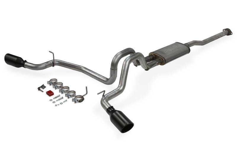 Our new Flowmaster® Flow FX® cat-back exhaust system for all 2005-2015 Toyota Tacoma trucks with the 4.0L engine is manufactured using durable 409 stainless steel tubing throughout and features a 2.50-inch inlet pipe leading to a Flow FX "straight-through" muffler for great sound and maximum performance. The dual 2.50-inch mandrel-bent tailpipes exit out the side at an angle behind the rear wheels directing exhaust away from your boat or travel trailer when towing. The system is finished off with a pair of large 4.50-inch diameter black ceramic coated 304S stainless steel tips, giving your truck a custom look that goes hand in hand with that deep performance Flow FX sound. This system uses all the existing factory hanger locations and includes an additional hanger to install the new left side tailpipe. Includes installation instructions and all necessary hardware for an easy installation that you can do at home.