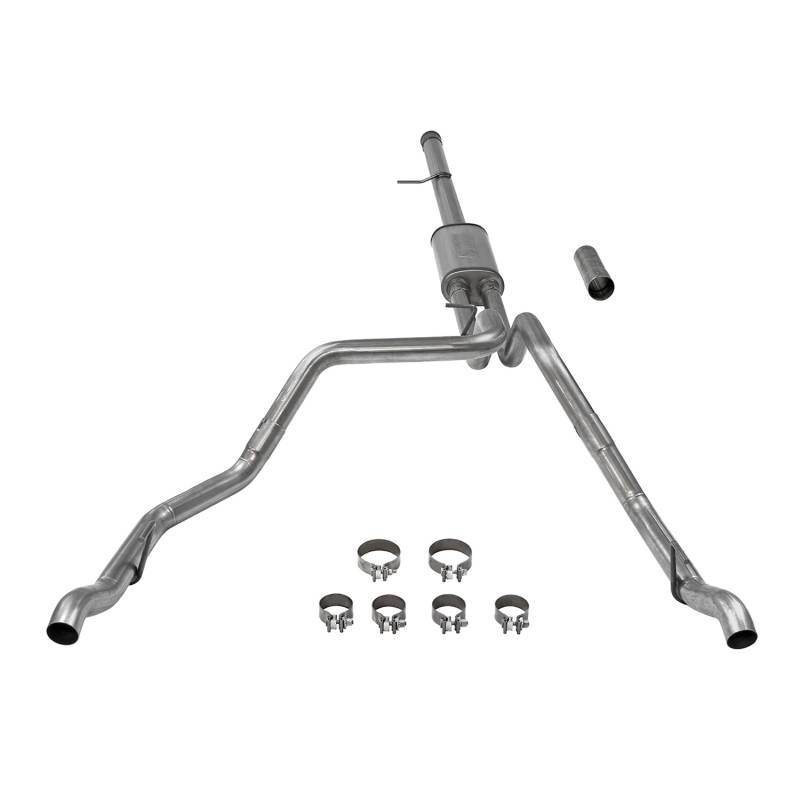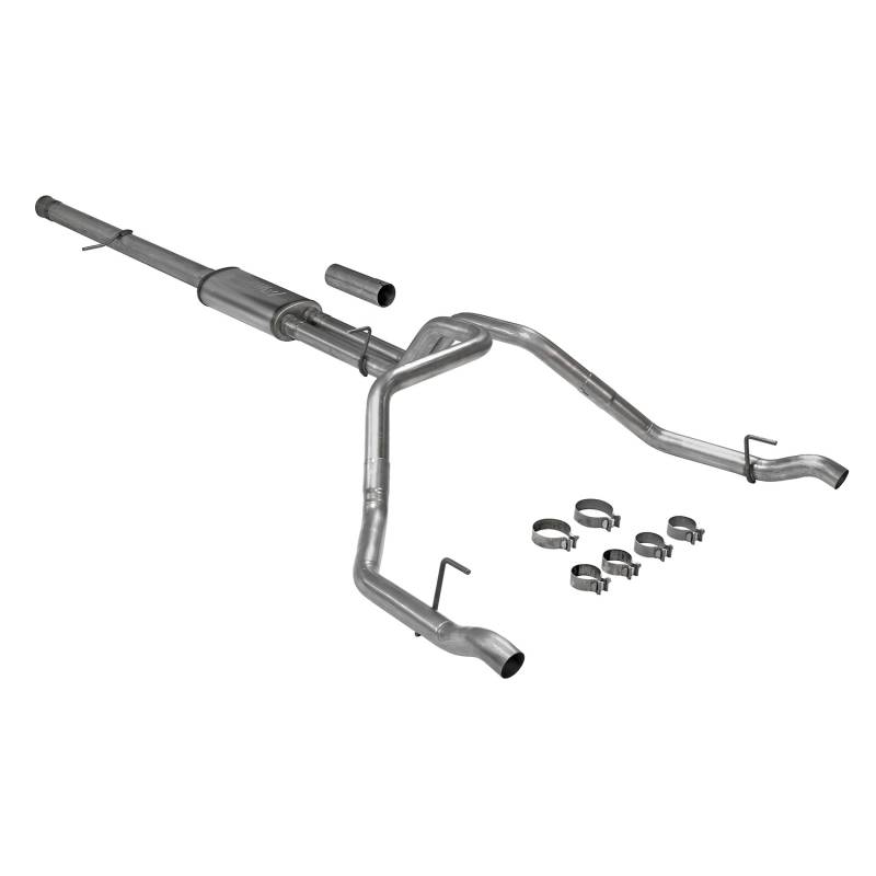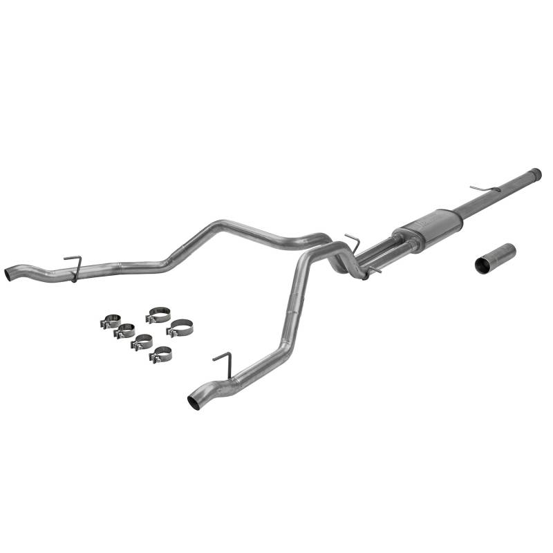 This Flowmaster® Flow FX® cat-back exhaust system for the 2019-2023 GM Silverado/Sierra 1500 trucks with the 6.2L engine and factory dual exhaust, is manufactured using durable 409 stainless steel throughout and features 3.5-inch to dual 2.50-inch mandrel bent pipes for better exhaust gas flow, and a Flow FX "straight-through" muffler is used for a moderate sound level and maximum performance. Maximum increases on the dyno revealed +26 hp and +39 lb.ft at the rear wheels. This system fits all wheelbases and connects to the factory exhaust tips that exit in the rear bumper for a stealthy look. The system uses all the existing factory hanger locations and includes installation instructions and all necessary hardware for an easy installation that you can do at home. Backed by Flowmaster's Lifetime Limited Warranty.