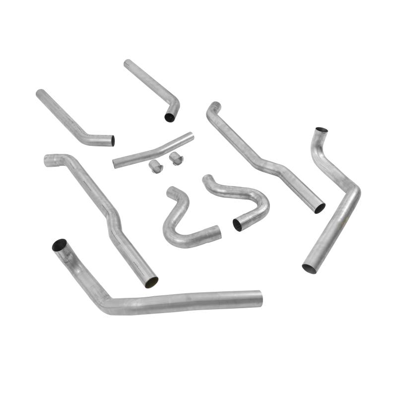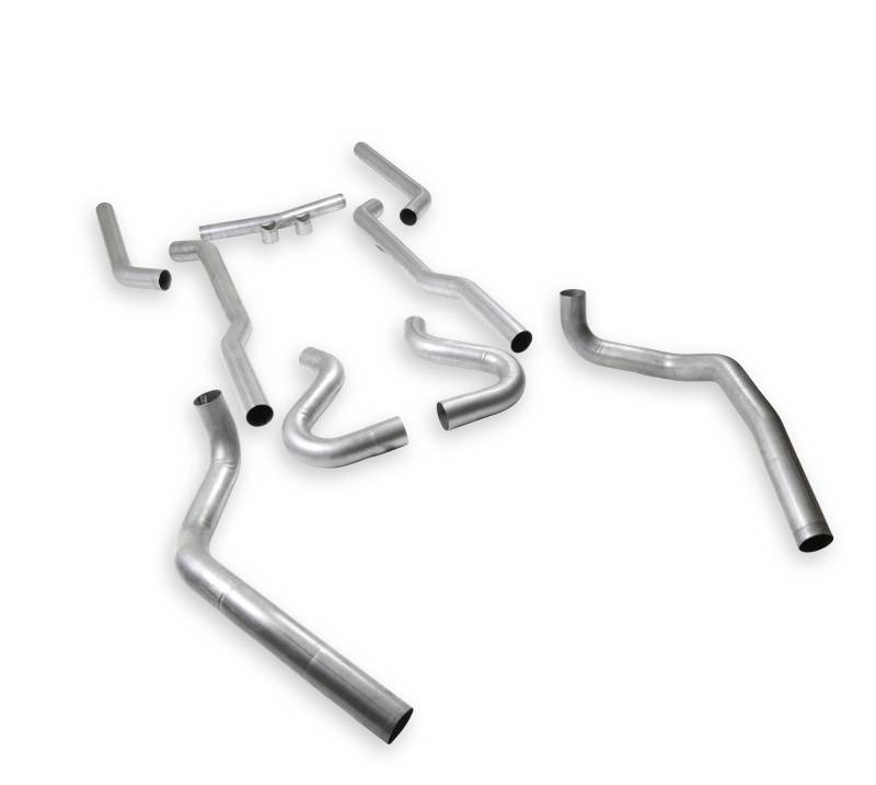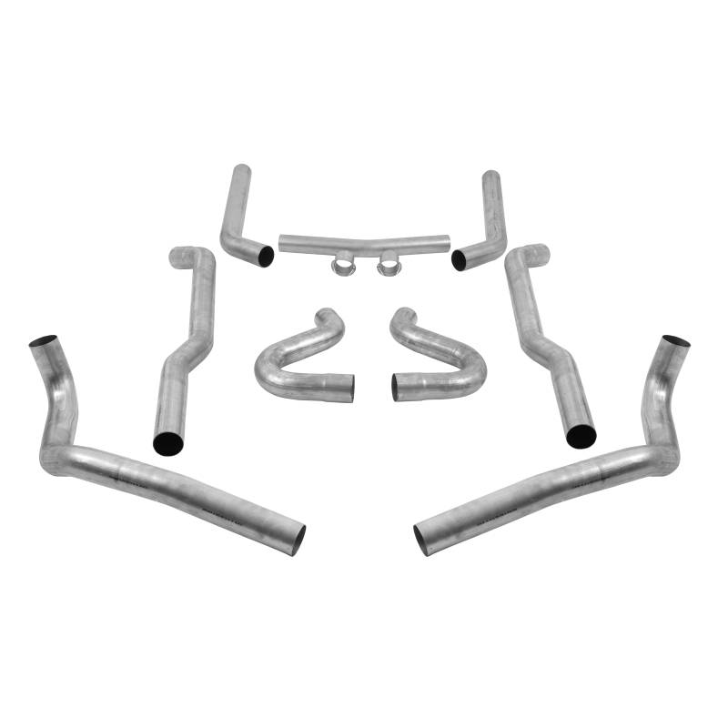 This mandrel-bent headers-back exhaust system is custom designed for most 1968-1972 GM A-body cars and is perfect for the person looking for true dual exhaust system. This system comes complete minus the mufflers and allows you to choose the sound level of the Flowmaster performance mufflers you desire for your vehicle. System features include all mandrel-bent 3.00-inch aluminized steel tubing, an H-pipe to equalize the exhaust gas pressures and sound for maximum performance and maximum clearance. Designed for an easy fit, these systems covered by our 3-year Limited Warranty. Notes: Requires 3.00-inch Offset Inlet/Opposite side Offset Outlet such as part# 943048 (Super 44 Series) or 53058 (Super 50 Series) mufflers. Does Not Include Header Collector Adapter Cones or hardware. Does Not align with the factory Oldsmobile 442 bumper cutouts. Fabrication required for installation of H-pipe.