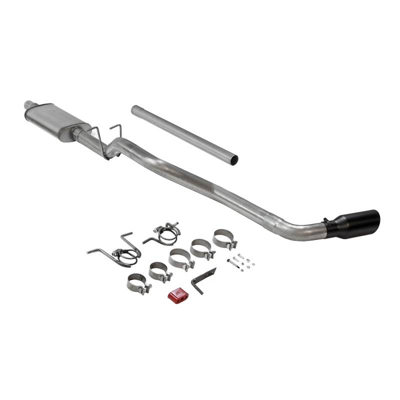 This Flow FX cat-back exhaust system is designed for the 1994-2001 Dodge Ram 1500 with the 3.9L, 5.2L, and 5.9L engines, as well as the 1994-2002 2500/3500 models with the 5.9L engine. Features include 409 stainless steel construction for added durability and 16-gauge 3.0-inch mandrel bent tubing for free unrestricted flow. The compact oval "straight-through" Flow FX performance muffler delivers a moderate yet deep and powerful sound while the interior sound is kept very mild. The system uses the factory hanger locations and is finished off with a 4.50-inch black ceramic-coated 304 stainless steel tip embossed with the Flowmaster name. The kit includes detailed instructions and all hardware necessary for a quick and easy installation you can do at home. Backed by Flowmaster's Lifetime Limited Warranty.