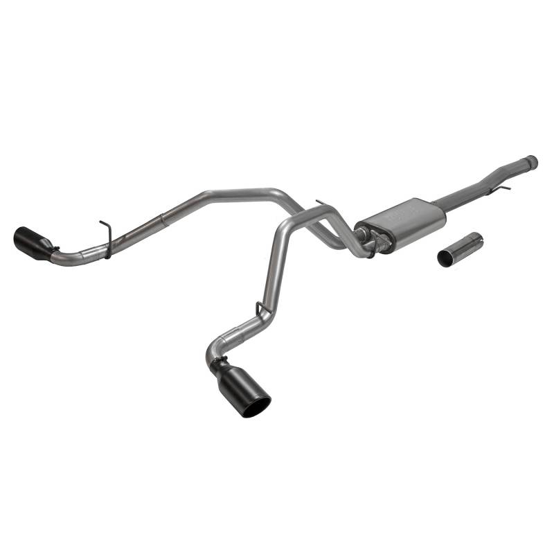 This Flowmaster® Flow FX® cat-back exhaust system for the 2011-2018 GM 1500 trucks with the 6.2-liter V8 engine is manufactured using durable 409 stainless steel throughout and features single 3.50-inch to dual 2.50-inch mandrel bent pipes for better exhaust gas flow, and a Flow FX "straight-through" muffler is used for a moderate sound level and maximum performance. Maximum increases on the dyno revealed +11 hp and +15 lb-ft at the rear wheels. This system exits out both sides, behind the rear wheels with 4.50-inch black ceramic tips for added style and a custom look. The system uses all the existing factory hanger locations and includes installation instructions and all necessary hardware for an easy installation that you can do at home. Backed by Flowmaster's Lifetime Limited Warranty.