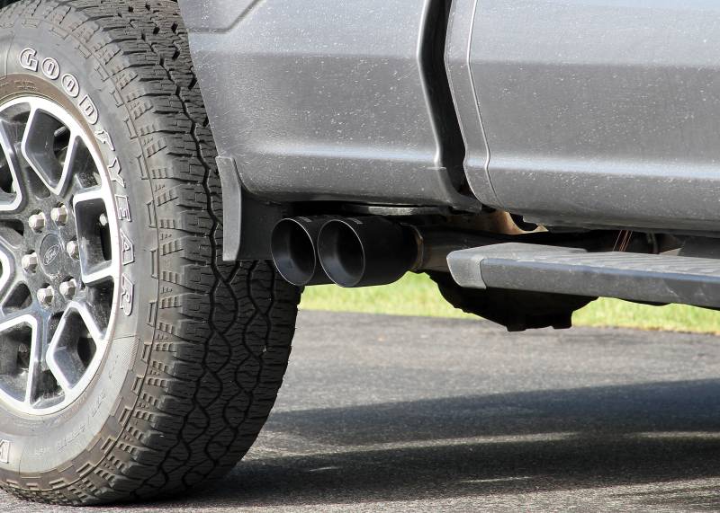 Flowmaster introduces our Flow FX stainless steel cat-back exhaust system for the 2021-2025 Ford F-150 trucks with the 2.7, 3.5, and 5.0-liter engines. This system uses a Flow FX series muffler for an aggressive to moderate sound level and increased performance. 3.00-inch to dual 2.50-inch mandrel bent 409 stainless steel tubing allows for maximum exhaust flow and durability. The system uses dual 4.00-inch black ceramic-coated tips for a custom look. Max dyno gains of 9 hp and 10 lb-ft at the rear wheels. All of the necessary hardware is included, and factory-mounting locations are used for an easy installation. Backed by Flowmaster's Lifetime Limited Warranty.