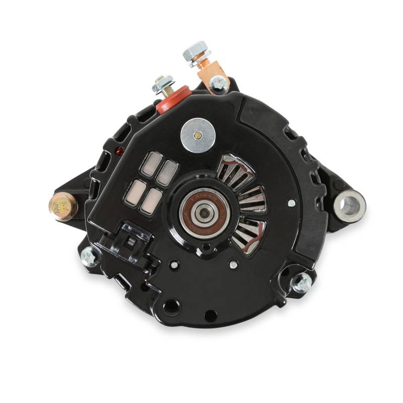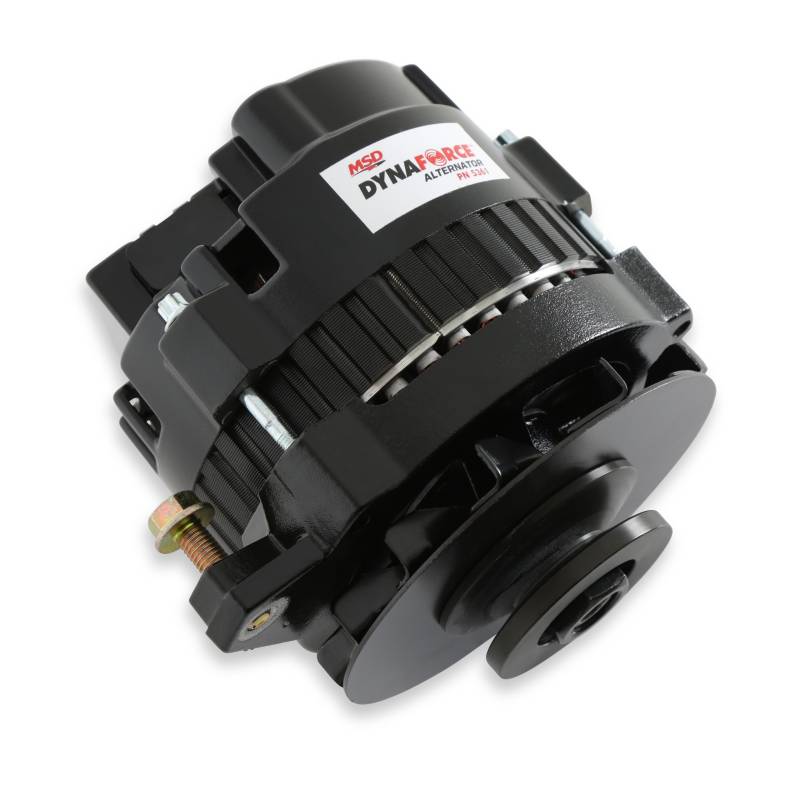 Whether you need a high output alternator to power your muscle car, street rod or touring machine, MSD has you covered with the DynaForce Alternator. For the street, MSD offers a 120 or 160 amp one-wire alternator. Not only are they designed for extreme output at higher rpm, but MSD balances the current output to keep your electronic components up to speed during idle and lower rpm operation as well. Both the 120 and 160 Amp alternators feature one-wire installation to keep things clean, easy and effective. The charge post of the alternators is moved to the side of the housing to allow for improved clearance to the block, plus a pulley baffle is included to ensure there is never any fan-to-belt issues (common at high rpm on lesser alternators).