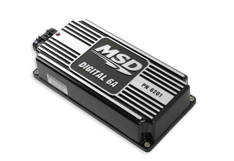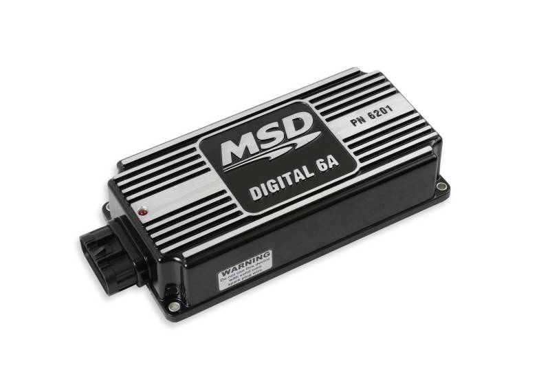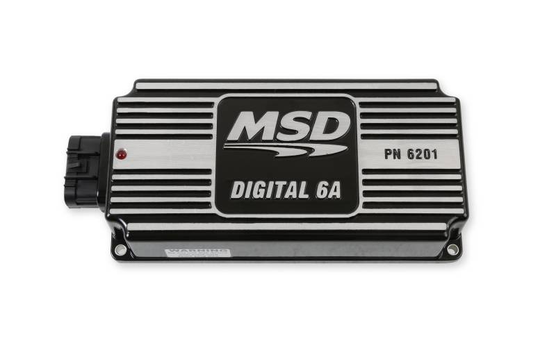 The Digital 6A is a microprocessor controlled, capacitive discharge ignition that multi sparks up to 3,000 RPM providing easy starts, a clean, smooth idle and quick throttle response by optimizing your engines efficiency. Above 3,000 RPM, a single spark stays lit for up to 20⁰ of crankshaft rotation ensuring a complete burn of the air / fuel mixture in every cylinder.\nA sealed, locking connector keeps the minimal wiring of the 6A tidy for a clean installation in all applications. It can be run on 4, 6 and 8 cylinder engines with a 12 volt negative ground electrical system and can be triggered with breaker points, an electronic amplifier or magnetic pickups.\nIf you're looking to improve the performance of your modified mill, we have the answer. Whether you've done a cam swap, or bolted on a carb, intake and headers… the 6A is a surefire way to harness all the ponies under your hood.