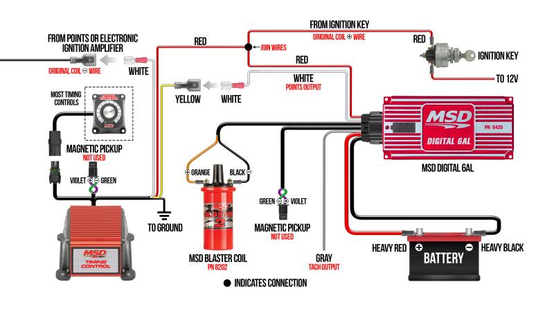 The Digital 6AL is supplied with the wiring harness and the components you'll need for installation. The 6AL is also supplied with vibration mounts. Both ignitions are compatible on 4, 6 or 8-cylinder engines with 12-volt, negative ground electrical systems. They'll accept trigger inputs from breaker points, amplifiers and magnetic pickups.\nThe wiring of the Digital 6AL is routed out one end of the unit through a sealed and locking connector. This eases installation and keeps your wiring looking neat and clean. The rev limiter of the 6AL is located right on top of the housing for easy access to the two rotary dials to set the limit in 100 rpm increments.\nInside the Digital 6AL you'll find a microprocessor that monitors and controls every firing and rev limit. The circuits are updated with efficient components that help the ignition produce more power while drawing less current. In fact, the Digital 6AL delivers over 530 volts to the coil with up to 135mJ of spark energy for every firing. Increased output combined with MSD's provenmultiple spark series is a win-win situation.\nThe MSD 6AL Ignition Control set the standards that other ignitions strive to reach. In fact, you'll find ignitions from other companies that carry the 6AL name (and in some cases, the same part number). MSD raised the bar even higher with the revised Digital 6AL Ignition Control.