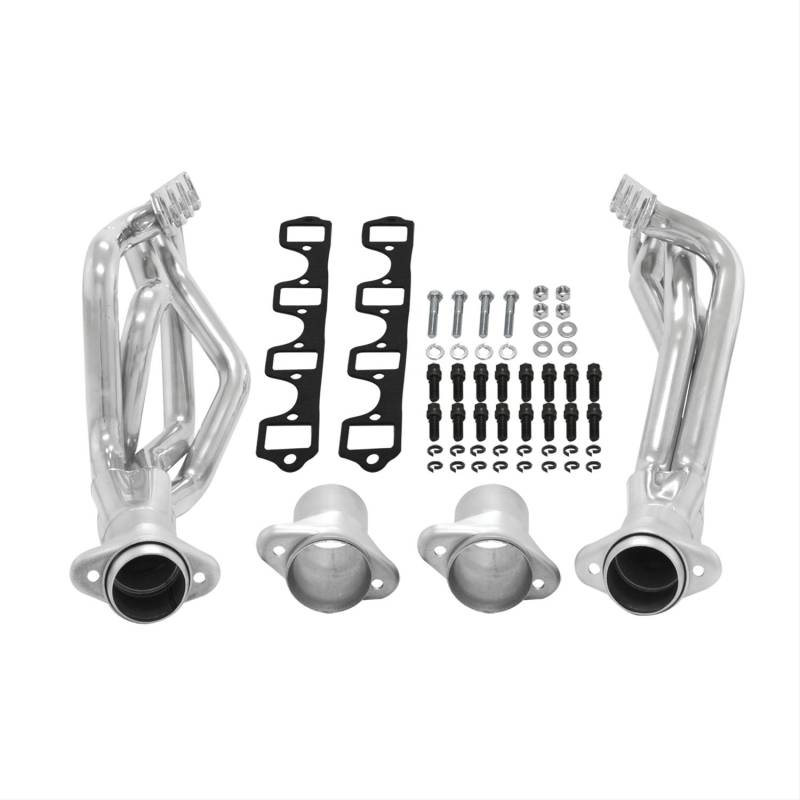 Flowmaster's Scavenger Series Elite long tube headers are designed to replace the factory cast iron manifolds. These high quality headers are manufactured from stainless steel and are ceramic coated for maximum durability. They feature 1-3/4 in. primary tubes, 3/8 in. thick flanges and incorporate Flowmaster's popular 3 in. ball flange collector connections ensuring a leak free installation. Scavenger Series long tube headers deliver maximum performance and are suited to the enthusiast who wants the best. Like all Flowmaster products the benefits include improved throttle response, power and engine efficiency. Designed for an easy fit these headers include gaskets and necessary hardware for easy installation. Note 1 - fits most Z-bars. Some vehicles may require Z-bar modification for proper fit. Note 2 - fits manual steering. Requires drop down bracket to fit with power steering. Note 3 - e-brake pivot bracket must be relocated on C6/AOD transmission. Note 4 -this product is legal only for off highway use (except in California or states that have adopted California emission standards), racing use or for use on pre-emission controlled motor vehicles/motor vehicle engines (pre-1966 domestic vehicles certified to California standards, pre-1968 domestic vehicles certified to federal standards and all pre-1968 foreign vehicles), per the application guide.