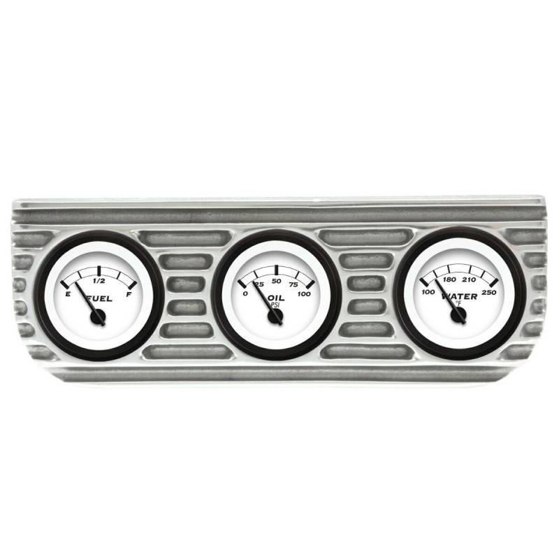 Vintage Finned 3 Gauge Bezel Mount w/ Aurora Fuel, Oil and Water Gauges